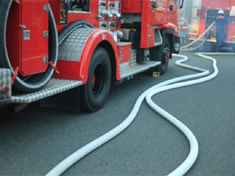 連結送水管(別名:消防隊専用配管)とは、火災時に消防隊の消火活動を補助する設備のことです。高層ビルや地下街など、消防ポンプ車からの消火活動を行いにくい建物内に配管設備と放水口を設けて、火災現場での放水活動を円滑に行えるようにします。